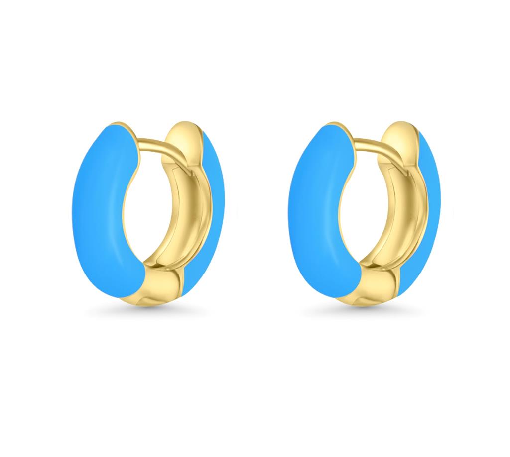 14K Vermeil & Blue Enamel Chunky Hoop Earrings