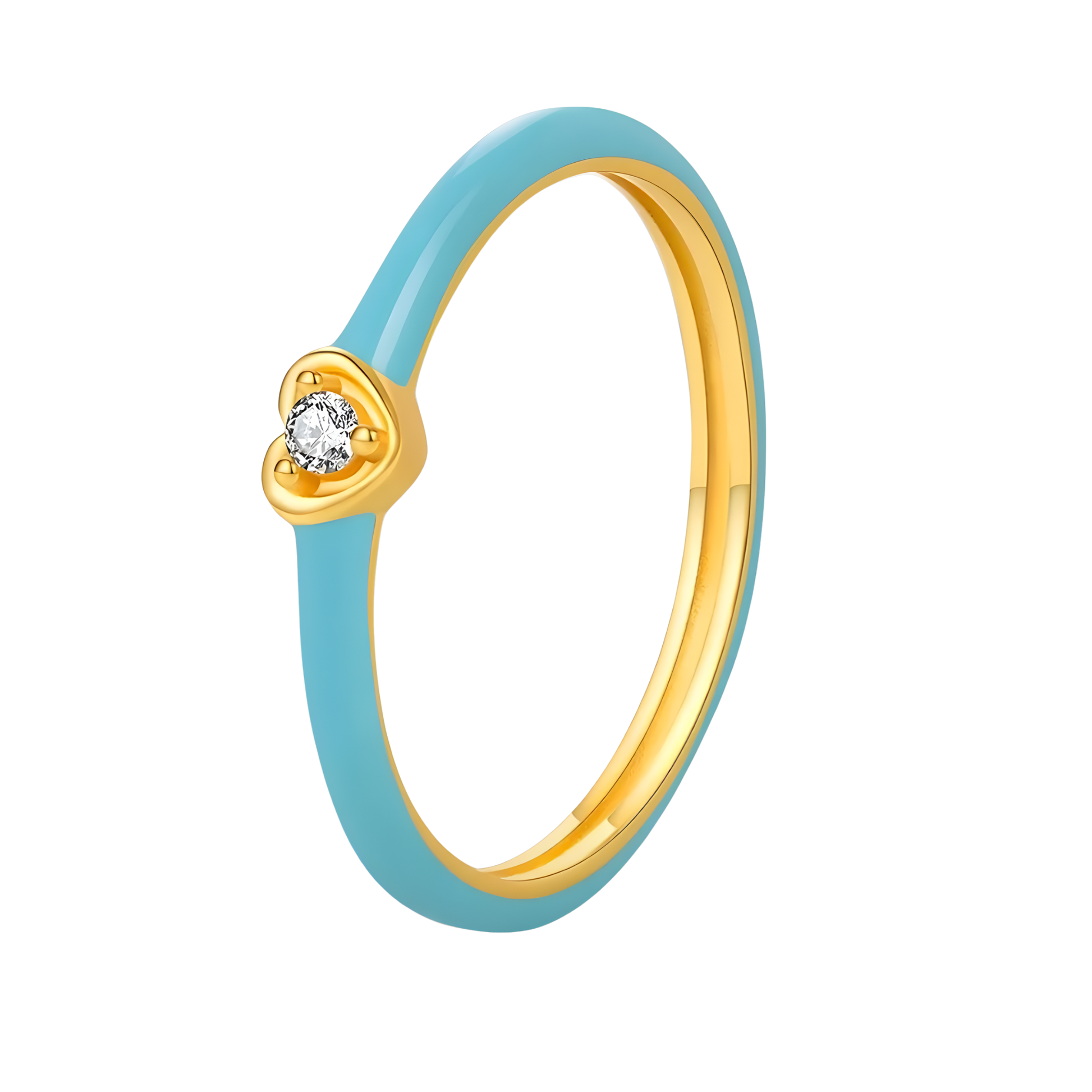 A sleek turquoise-blue enamel band beautifully complements the warm 14K gold vermeil setting. At its center rests a petite heart adorned with a sparkling cubic zirconia stone — a timeless symbol of love and light.