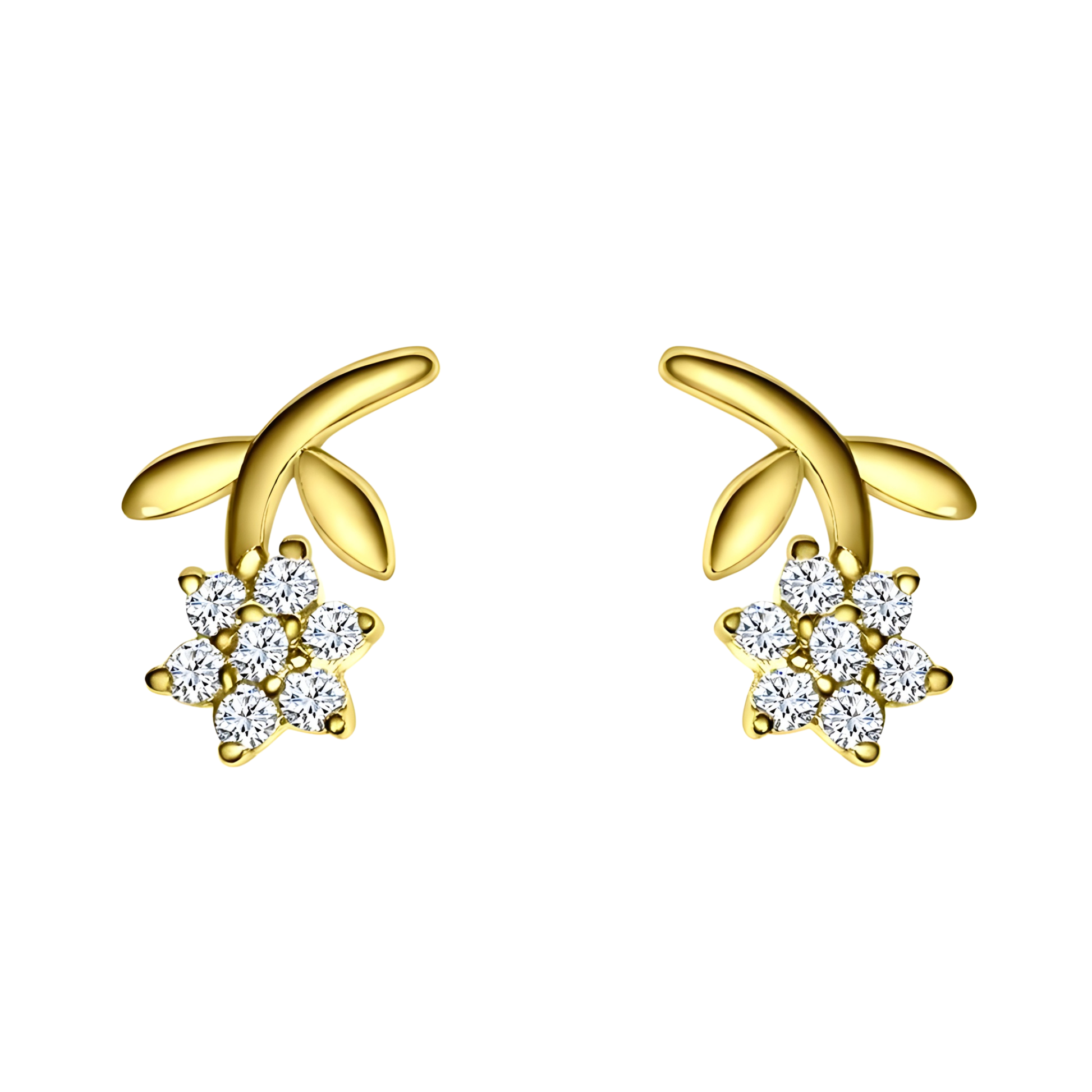 Luxurious Craftsmanship and Sparkling Detail Crafted from high-quality 14K gold vermeil, these earrings radiate a warm, golden luster that enhances their sophisticated appeal. The flower petals are intricately set with brilliant cubic zirconia stones that shimmer beautifully with every movement, while the graceful stem adds a contemporary twist to the classic floral motif.