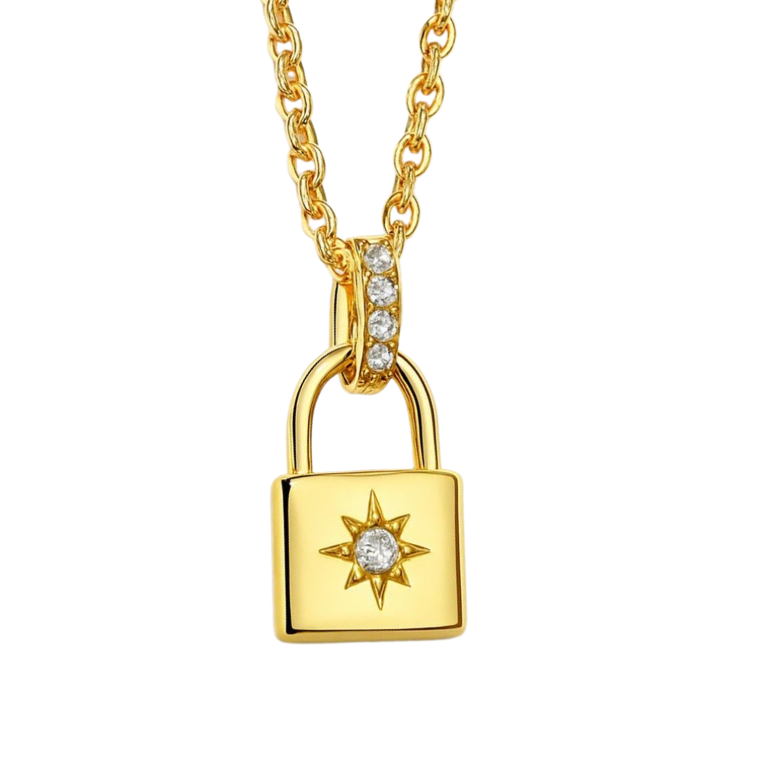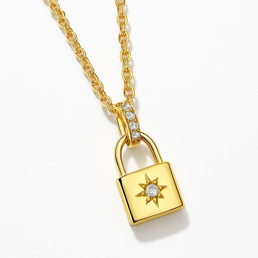 CZ North Star Lock Pendant with a 14K Vermeil Rondelle with White CZ Stones Necklace