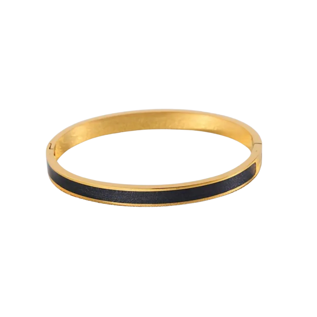 18K Gold Over Stainless Steel Black Shimmering Enamel Bangle