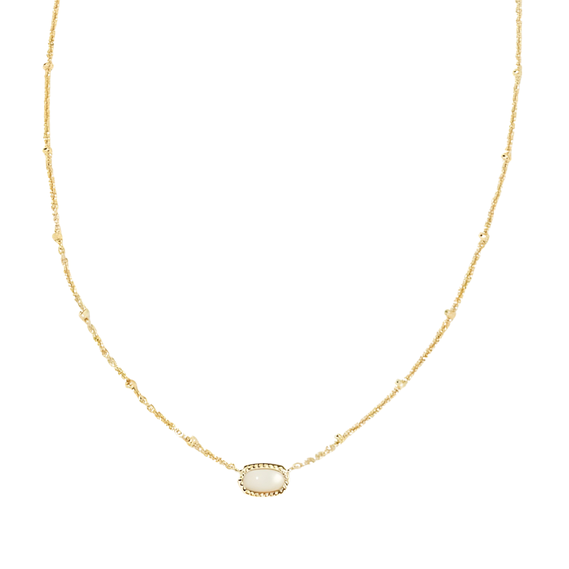 Expertly crafted in high-quality gold plating, the fine bead-accented chain adds subtle texture and elegance. The luminous enamel centerpiece catches the light beautifully, while the surrounding halo detailing enhances its brilliance for a truly refined finish.