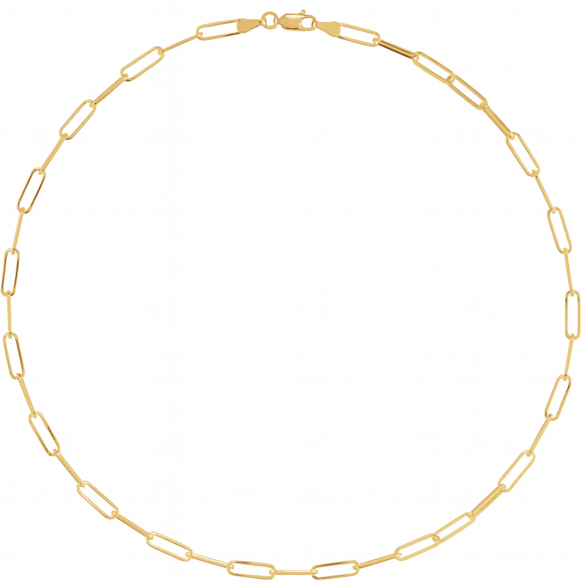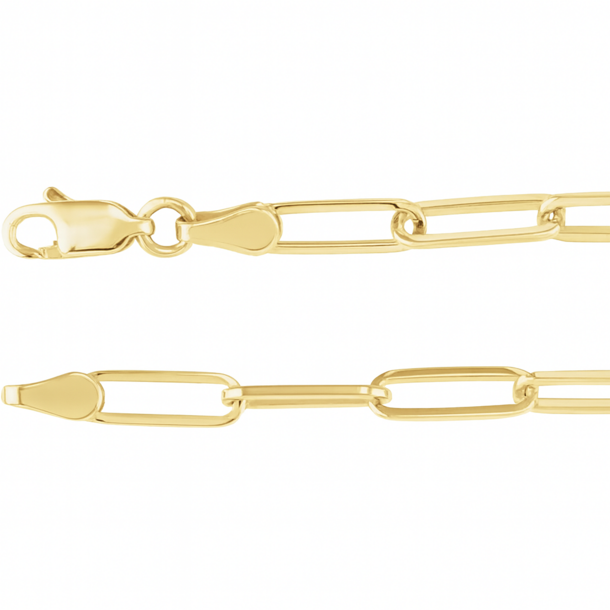 Each 3.85mm rectangular link is meticulously polished to perfection, creating a sleek, minimalist silhouette that adds understated elegance to any outfit. The lobster claw closure ensures a secure, seamless fit, while maintaining the necklace’s refined aesthetic.