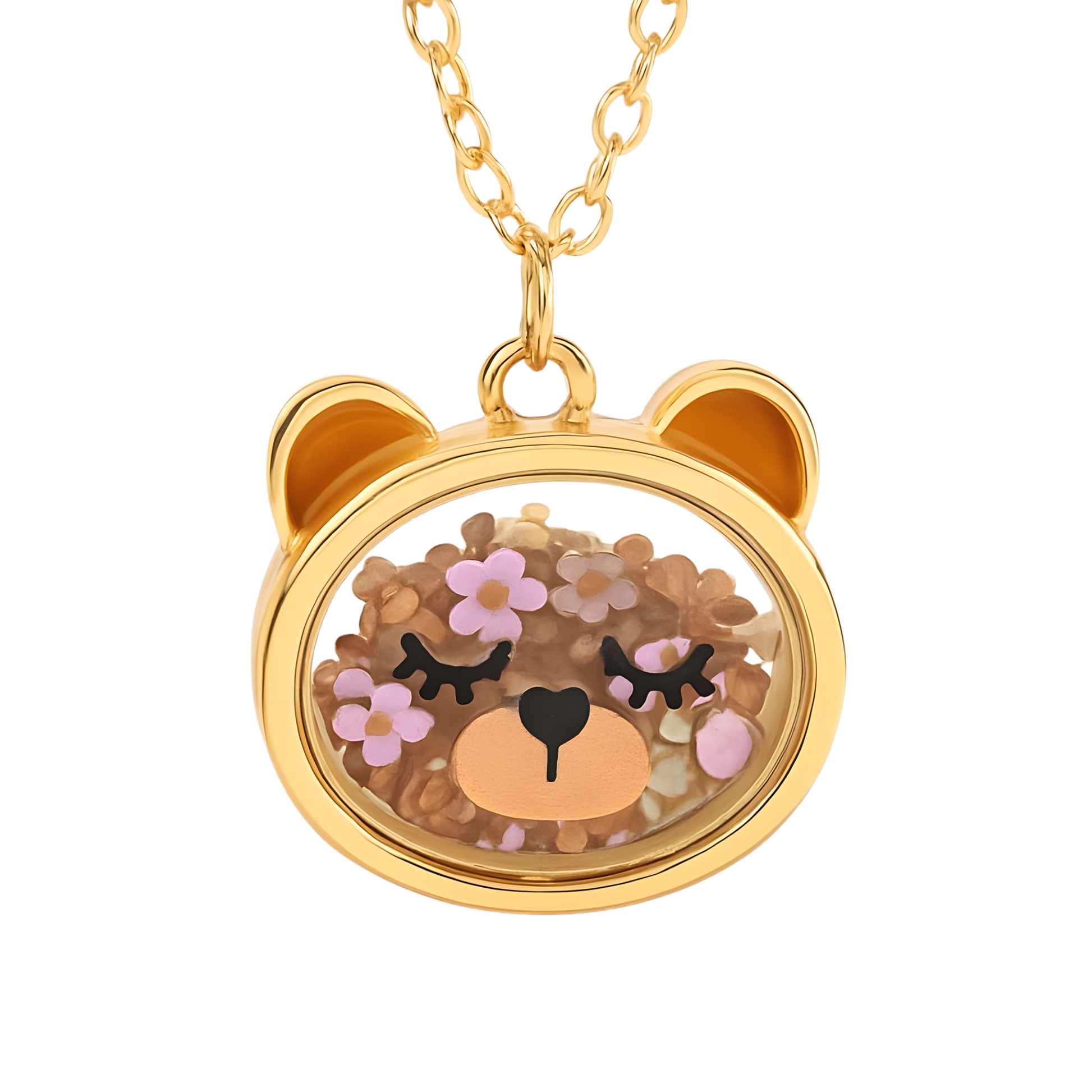 Charming Design Crafted with care and creativity, the Bear Shaker pendant is framed in durable gold-tone metal for long-lasting shine. The see-through design allows the confetti pieces inside to dance freely, creating a sensory experience that’s both mesmerizing and fun to wear.