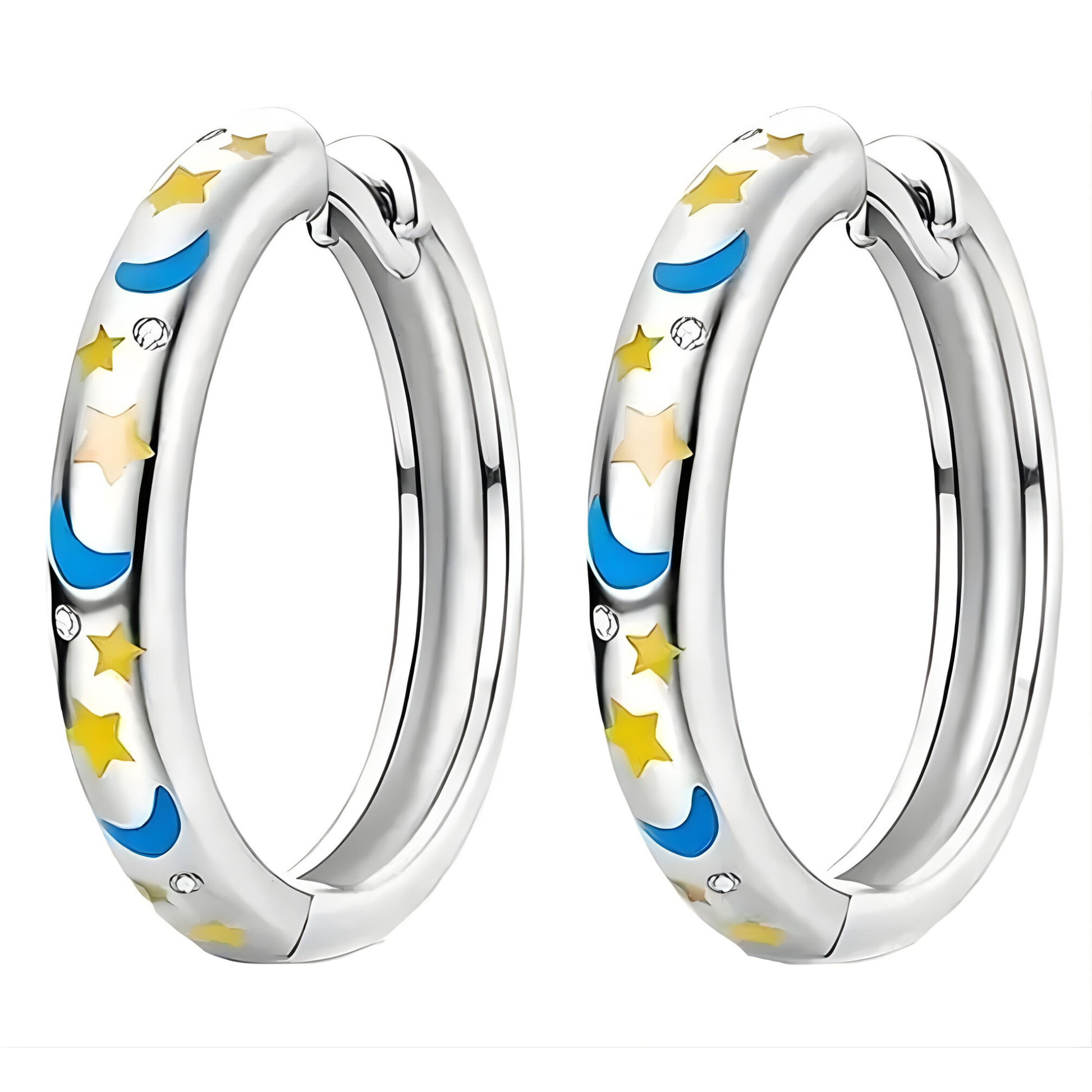 Exceptional Craftsmanship Expertly crafted from genuine 925 sterling silver, each hoop features hand-painted enamel details in golden stars and luminous blue moons, accented with delicate crystal embellishments. The precision design ensures both comfort and brilliance, making these hoops as durable as they are dazzling.