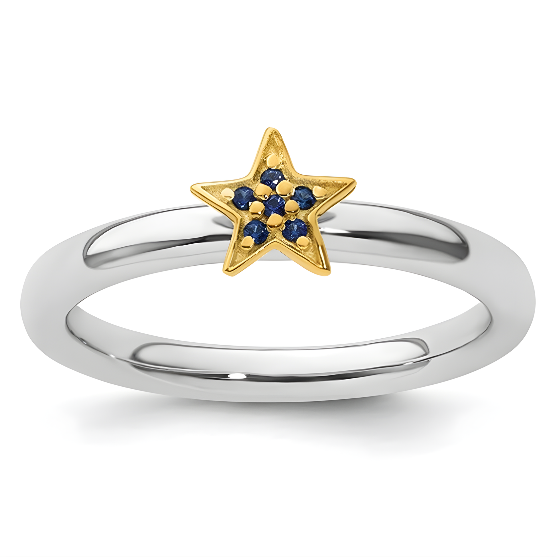Sterling Silver & 14K Vermeil Stackable Sapphire Star Ring