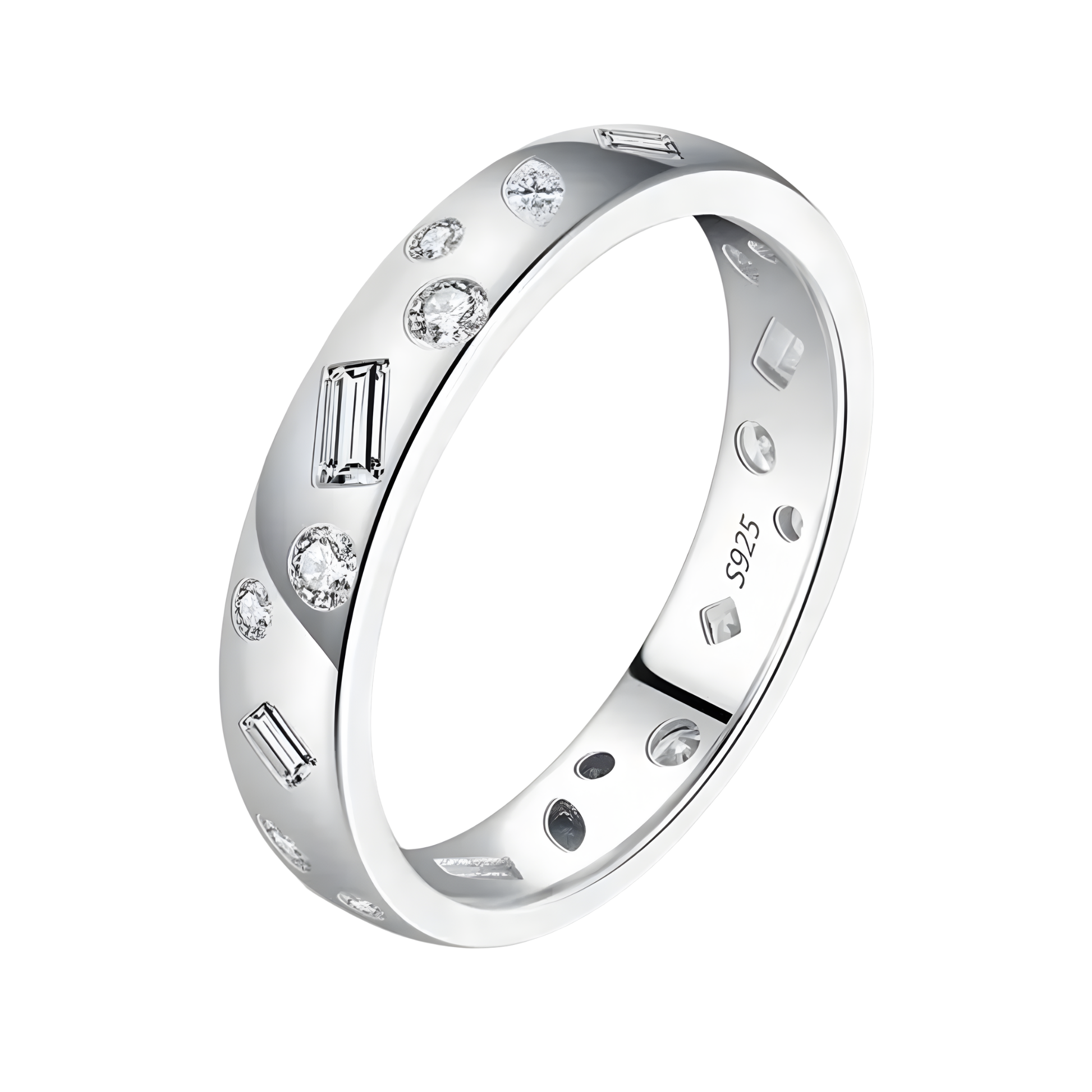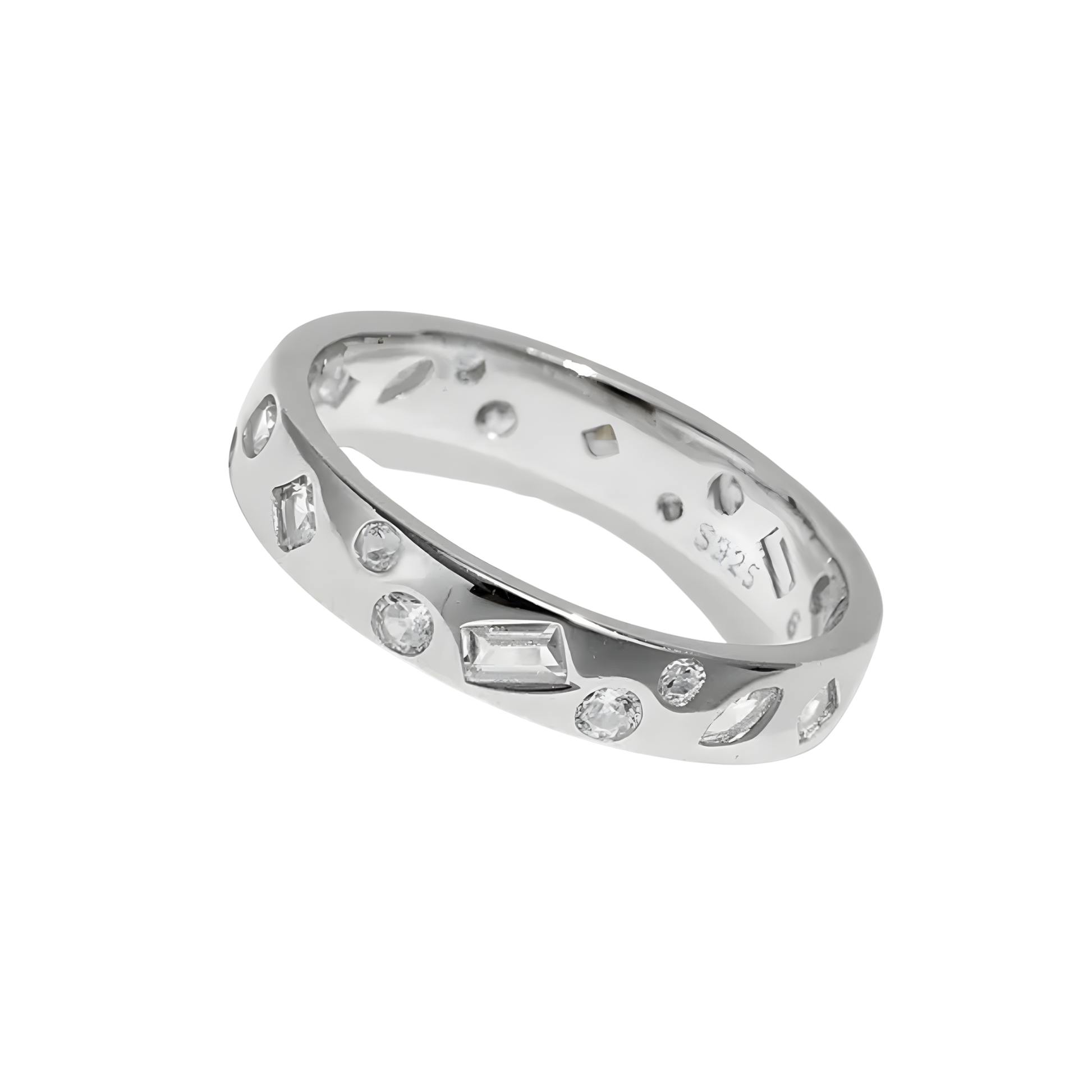 Sleek, luminous, and sophisticated, the Sterling Silver CZ Mélange Ring celebrates the artistry of modern jewelry with timeless sparkle and effortless grace.