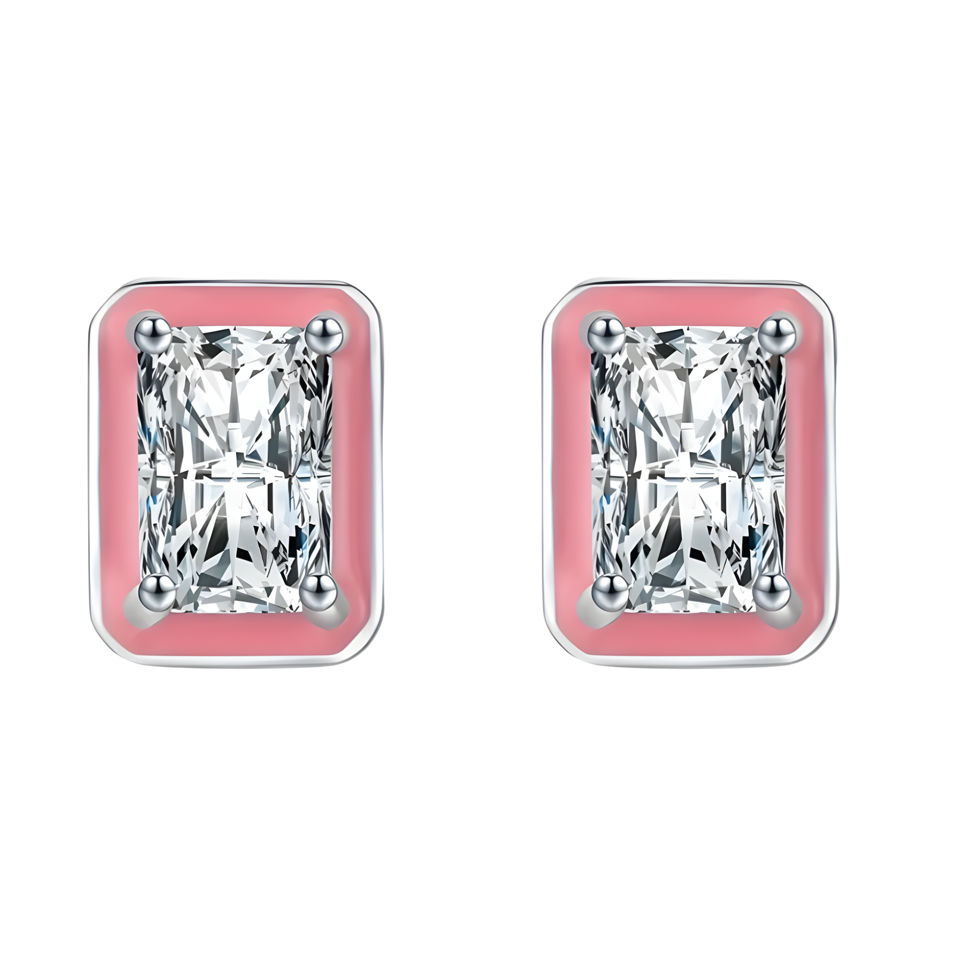 Featuring radiant-cut cubic zirconia stones framed with a delicate border of soft pink enamel, these studs create a captivating contrast of shimmer and hue. The clean rectangular silhouette brings a refined, modern aesthetic to your jewelry collection.